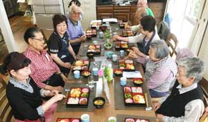 ・地域の小学校の家庭科室を使ってみんなで調理し会食しています。